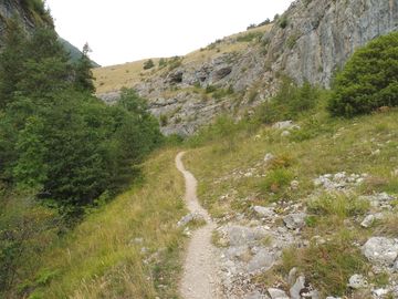 Puis lorsque la piste aborde un coteau, avant de commencer la montée, prendre à gauche un sentier qui va descendre vers le vallon du RIF.